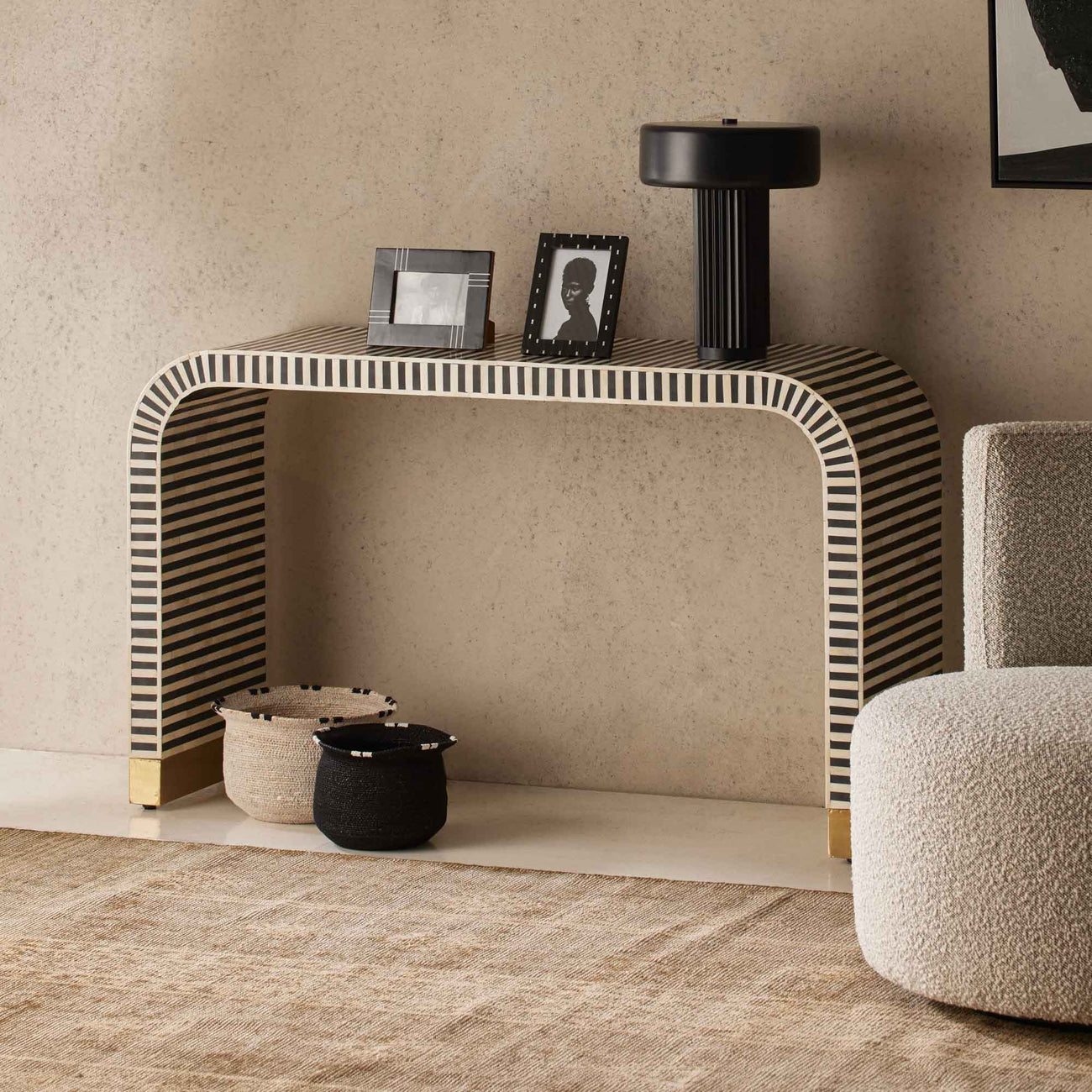Kenly Bone Inlay Console - Black/Cream